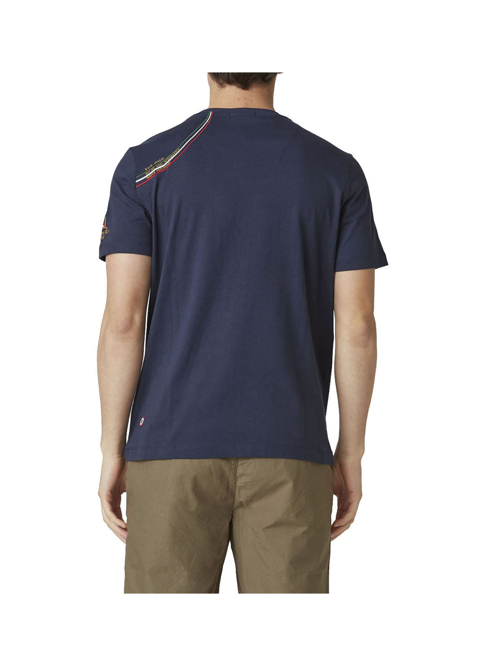 La T-shirt Aeronautica Militare Uomo - Blu è un capo elegante e raffinato, caratterizzato da dettagli ricercati che lo rendono unico nel suo genere. L'applicazione del logo a contrasto sul petto e i ricami sulle maniche e sul retro dedicati alle Frecce Tricolori conferiscono un tocco di stile e originalità al capo, ispirato alle esibizioni acrobatiche degli aerei militari. Perfetta per gli amanti dell'aviazione e dello stile sofisticato.