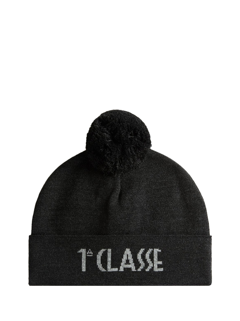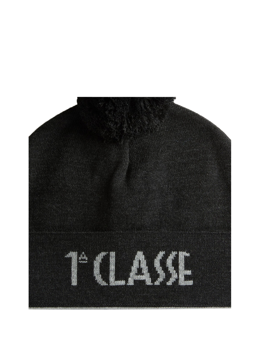 Cappellino con pompon in misto lana antracite