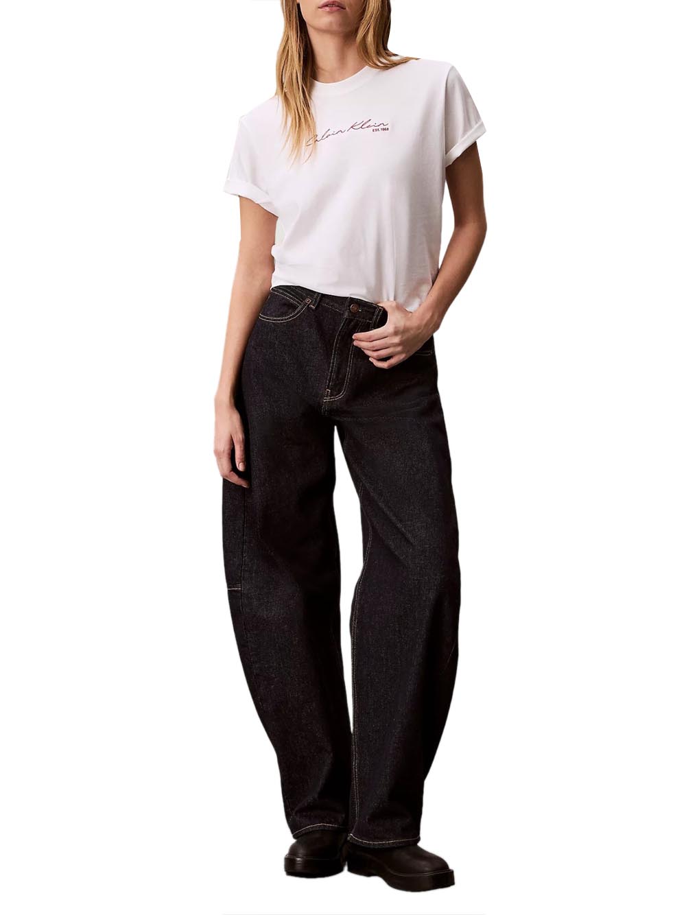 La T-Shirt Calvin Klein Ss Graphic Boxy Tee - Bianco si presta a moltissimi abbinamenti grazie al colore neutro e alla costruzione in cotone, che la rende piacevole da indossare durante la giornata. Per un look casual puoi portarla con jeans dritti, pantaloni cargo o bermuda in denim, completando l'insieme con sneakers pulite e una felpa aperta nelle giornate più fresche. Se preferisci un outfit più urbano, abbinala a pantaloni ampi in tessuto tecnico o a una gonna midi in denim, aggiungendo una giacca leggera o un bomber dal taglio essenziale. Il bianco valorizza bene tonalità come nero, blu denim, beige, grigio e verde militare, permettendo combinazioni molto semplici ma sempre efficaci. Grazie alla sua linea versatile, questa t-shirt può essere indossata anche sotto blazer morbidi o camicie aperte, per creare un equilibrio tra praticità e stile quotidiano.