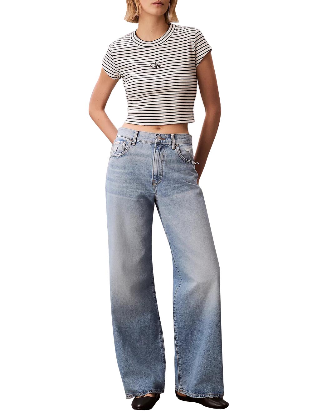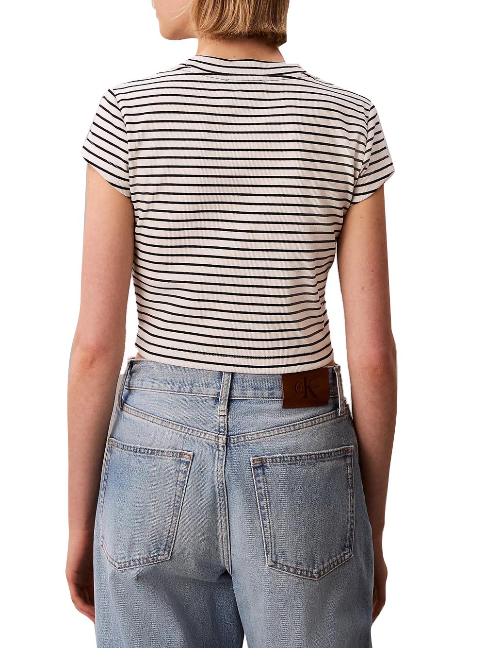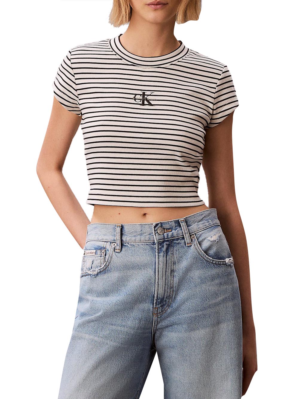 - Calvin Klein t-shirt donna con eleganti righe e monologo ricamato