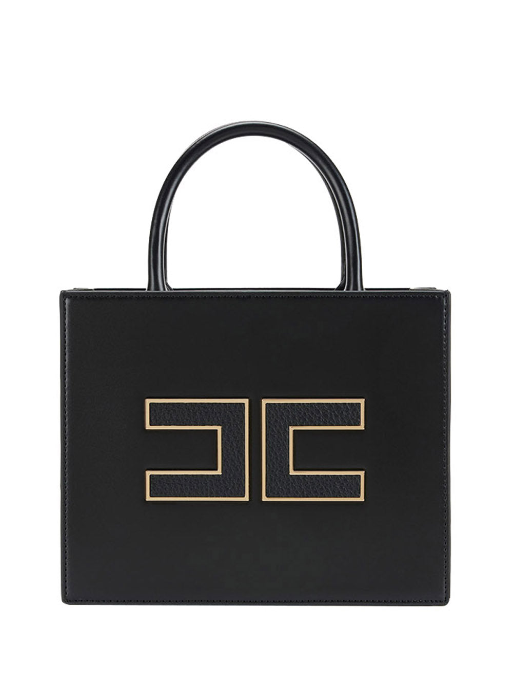 La borsa a mano Elisabetta Franchi con logo dorato in nero è una piccola tote realizzata in materiale sintetico effetto pelle, dotata di doppio manico tubolare. Dal design compatto e essenziale, presenta un logo impreziosito da profili luminosi che conferiscono un tocco di eleganza. Con manici tubolari e dimensioni di 12,5 x 16 x 7,5 cm, la borsa è composta al 50% di poliuretano, al 40% di pelle sintetica e al 10% di altri materiali.
