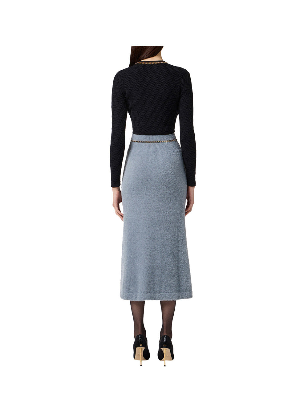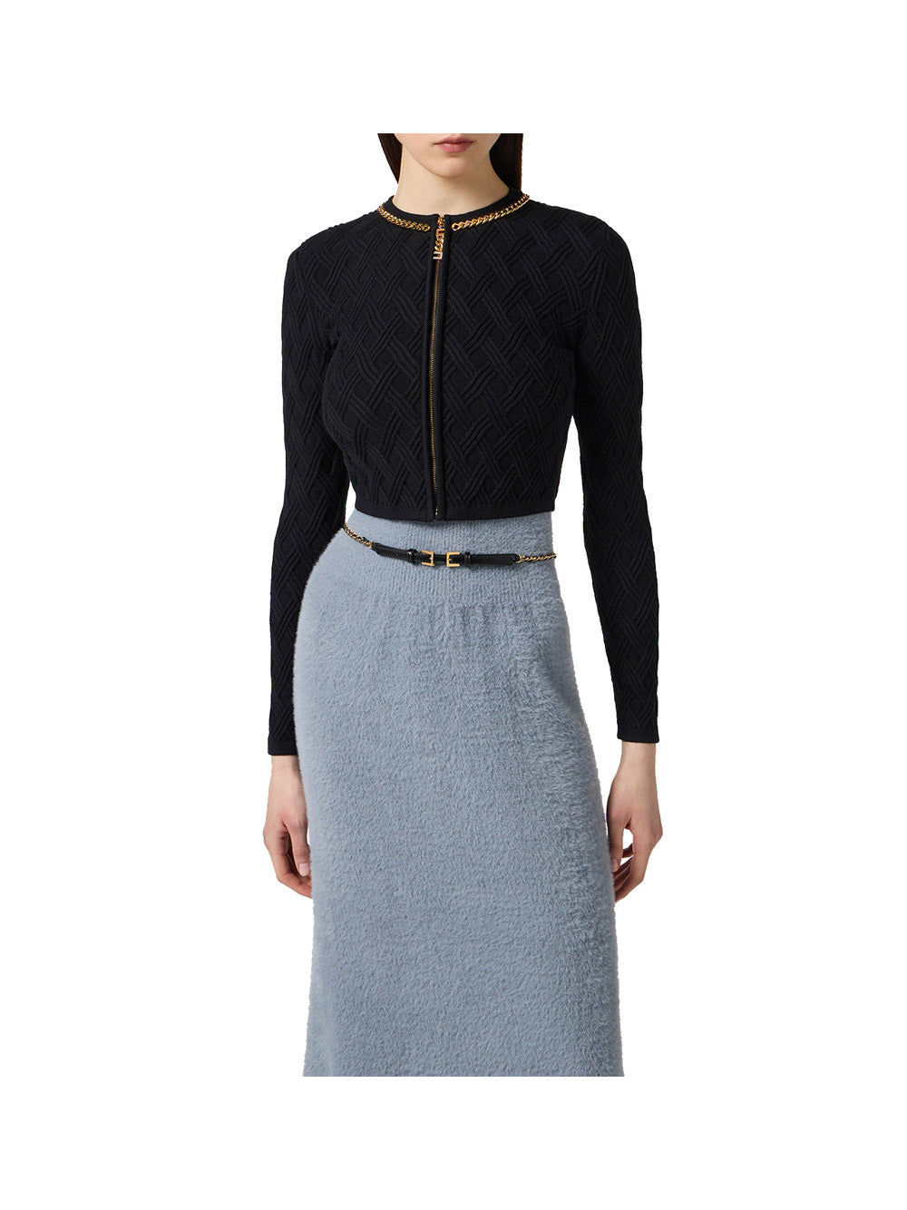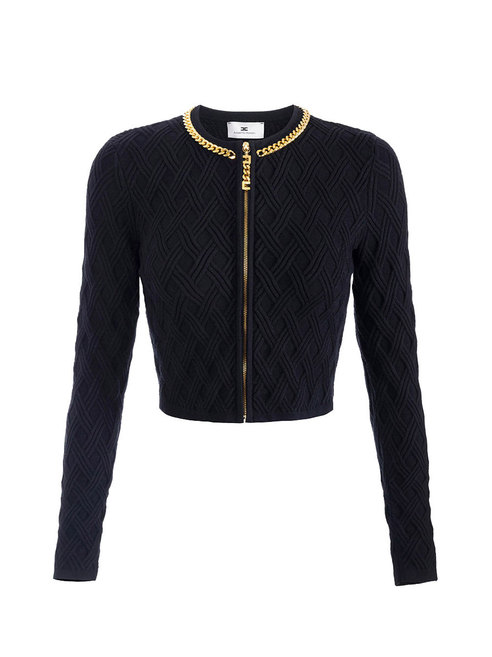 Cardigan in maglia a rombi con dettaglio gioiello nero