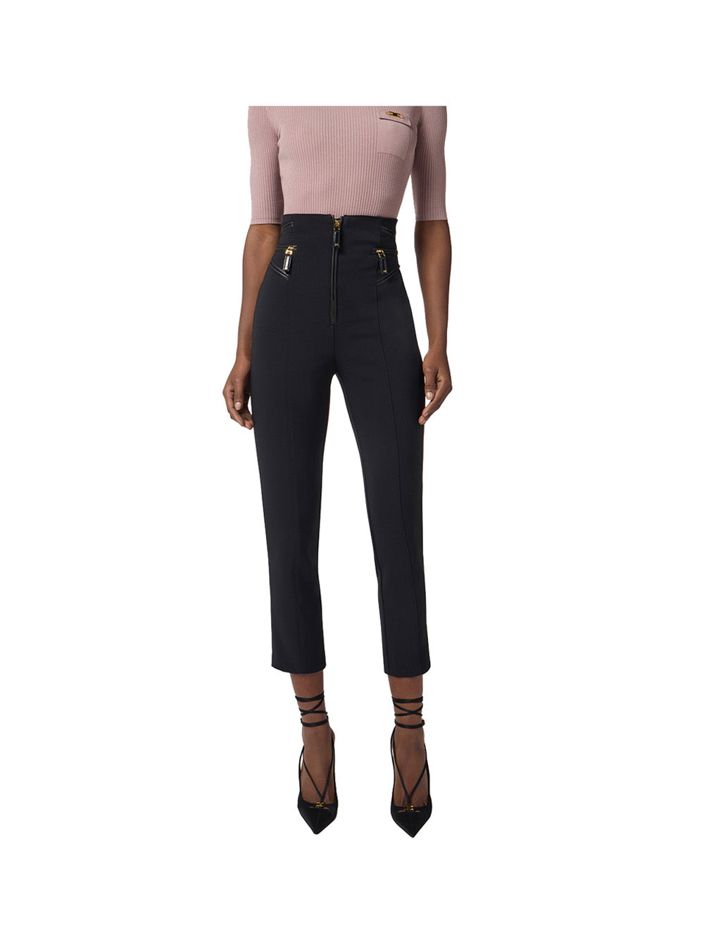Pantaloni in crêpe con dettagli zip nero