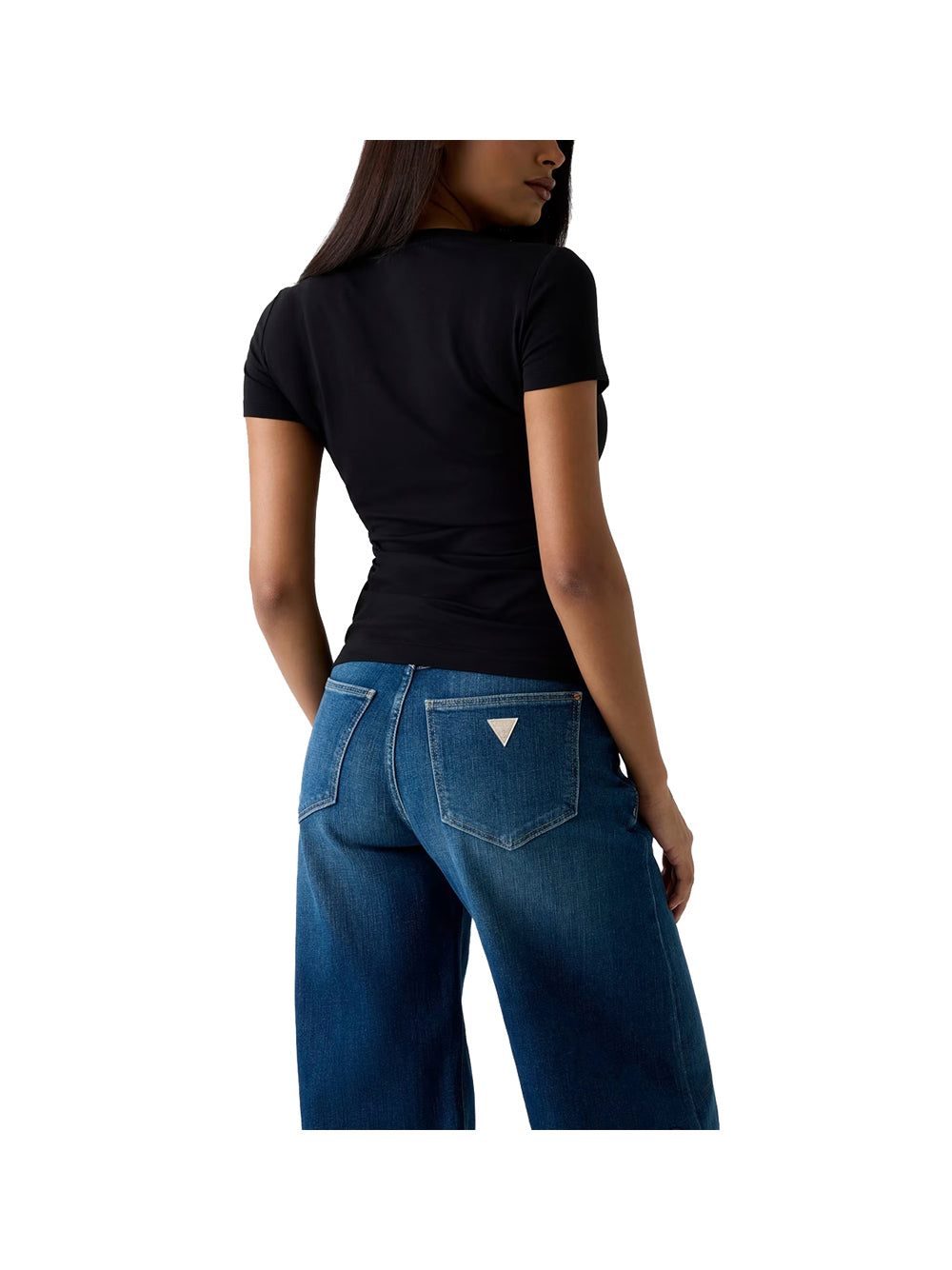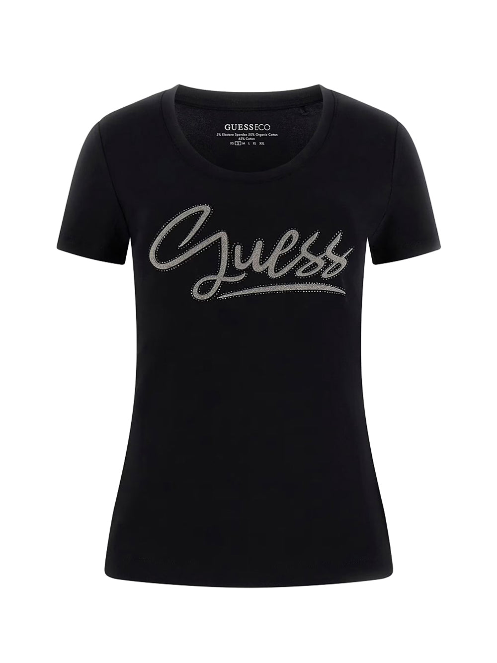 T shirt con strass logo nero