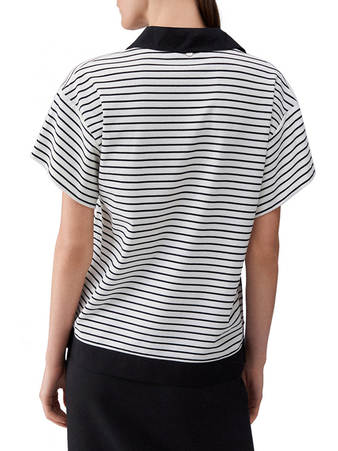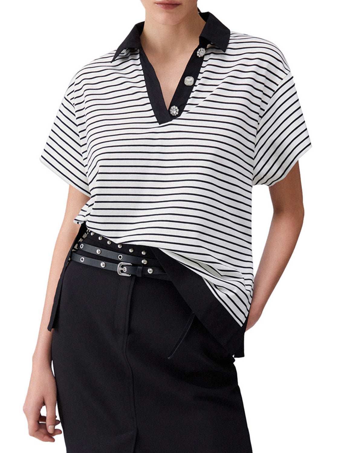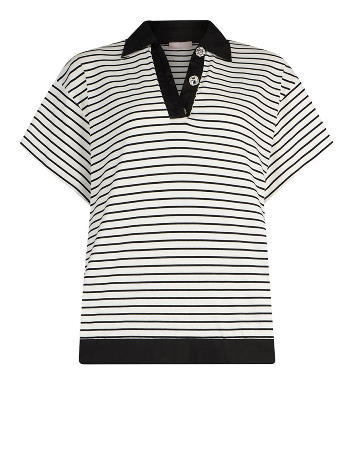 Polo a righe con bottoni gioiello bianco/nero