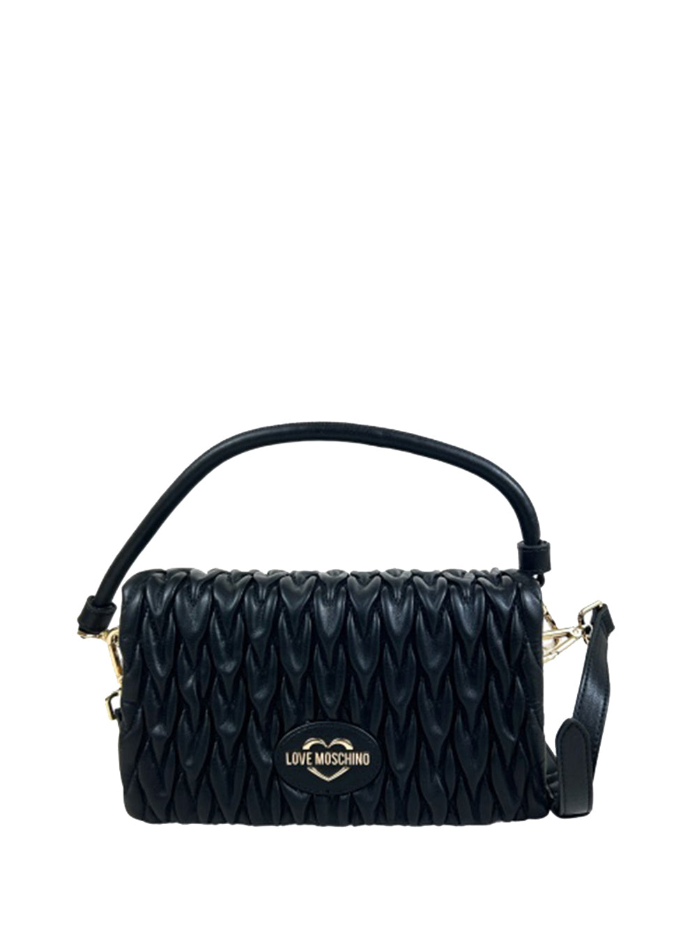 La Moschino Borsa a Mano in nero è l'accessorio perfetto per ogni occasione. Realizzata in morbida pelle, presenta un design elegante e sofisticato, arricchito dal logo della marca in metallo. Le dimensioni compatte la rendono ideale per trasportare comodamente gli oggetti essenziali. Con i suoi dettagli di prima qualità e la sua versatilità, questa borsa si distingue per stile e praticità.