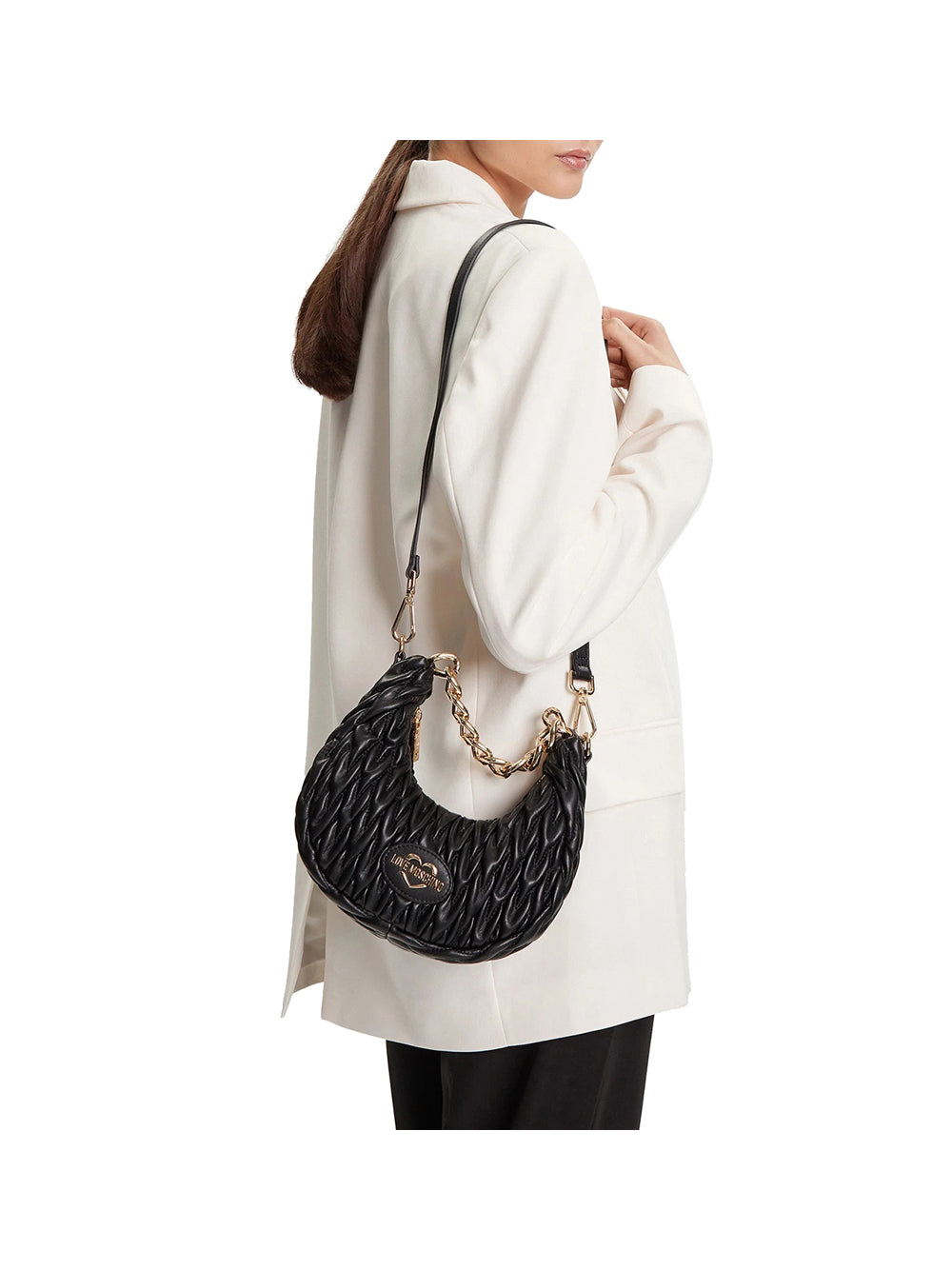 La borsa a spalla Moschino in nero è un accessorio di tendenza perfetto per completare qualsiasi outfit. Realizzata in morbida pelle sintetica, presenta una pratica chiusura a zip e una tracolla regolabile per un comfort ottimale. Con dimensioni di 24 x 20 x 9 cm, offre ampio spazio interno per riporre comodamente tutti gli oggetti essenziali. L'iconico logo Moschino in metallo aggiunge un tocco di classe e glamour. Un must-have per chi ama lo stile sofisticato e alla moda.