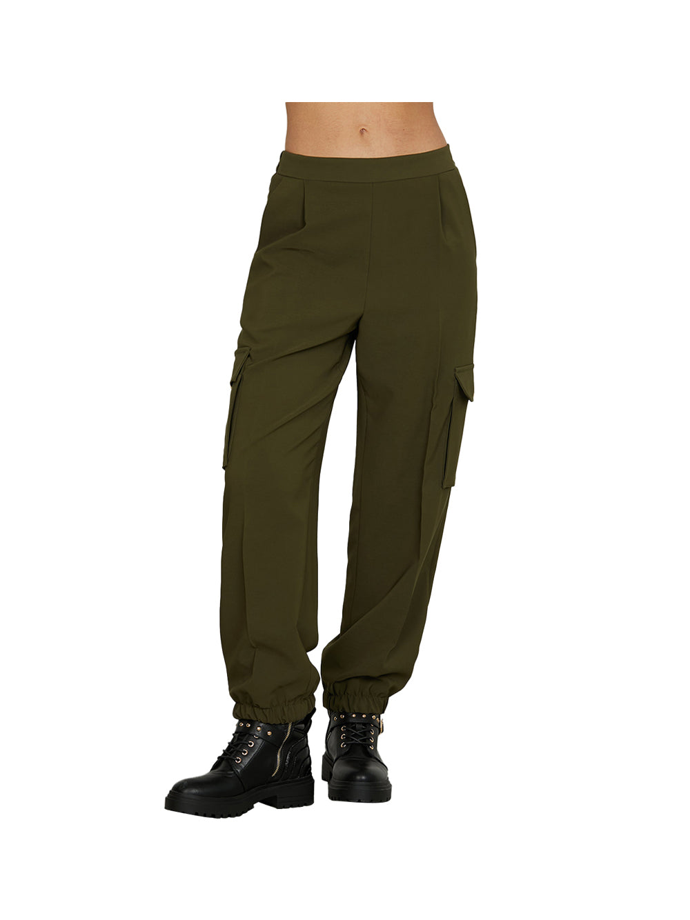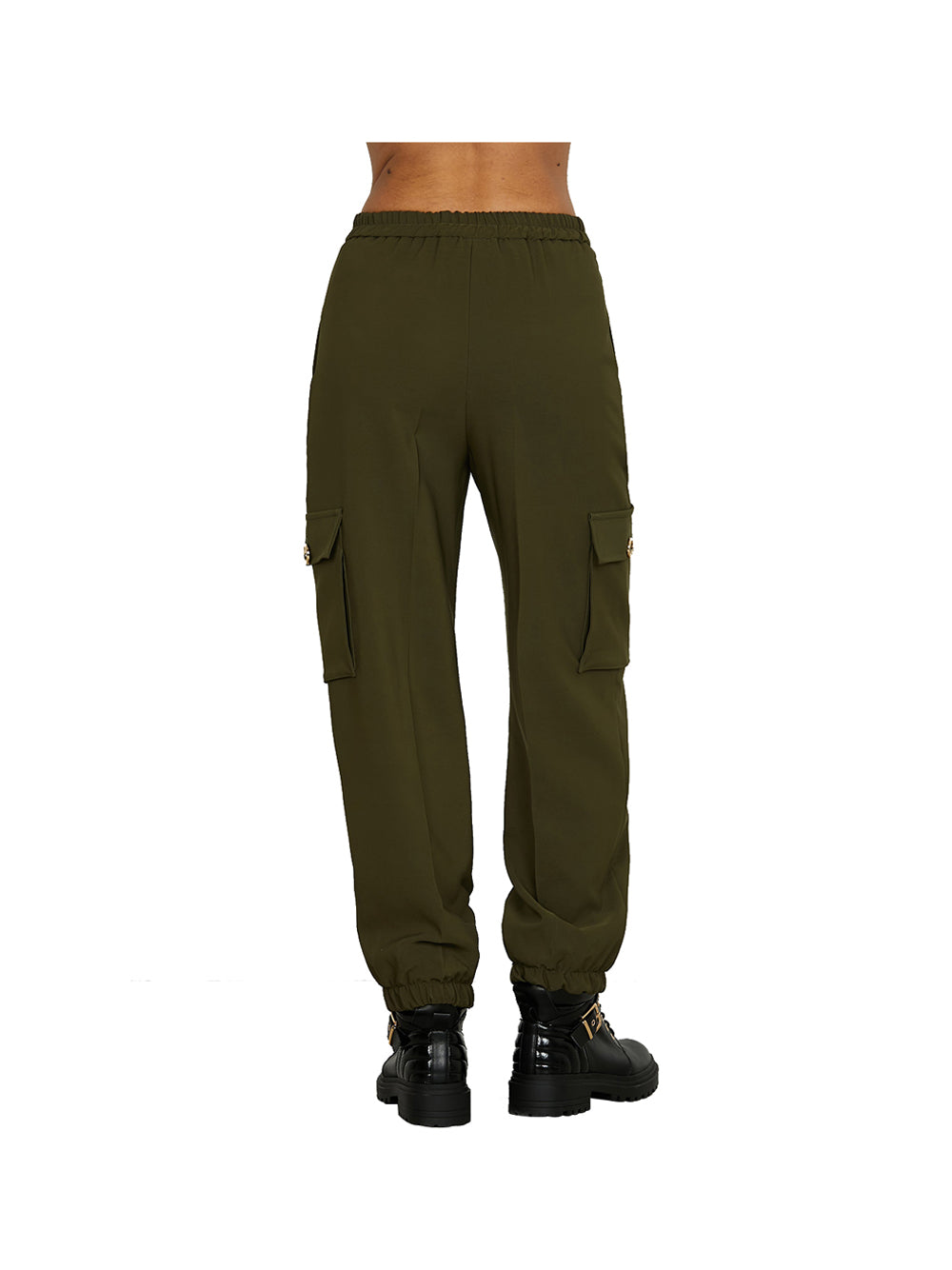 Panta teclana vita alta con elastico più tasconi più tasche francesi più pieghe verde
