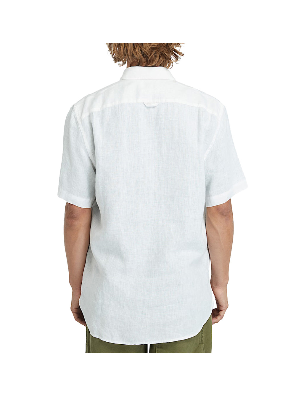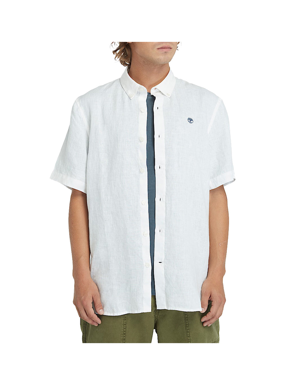 Questa camicia da uomo Timberland è perfetta per l'estate grazie al suo tessuto leggero e traspirante in lino al 100%. La silhouette slim e il mini colletto button down conferiscono un look elegante e casual, adatto per molteplici occasioni. Il logo ricamato sul petto aggiunge un tocco di stile unico.