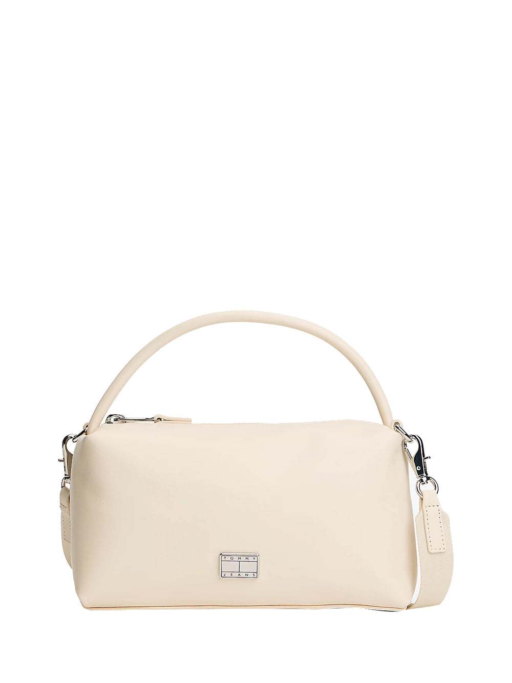 Borsa a tracolla con logo in metallo beige