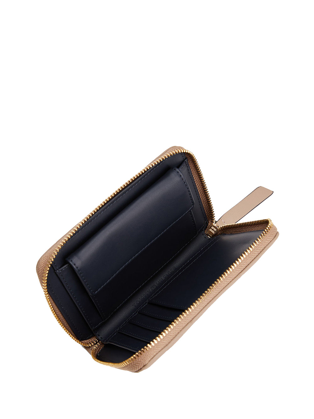 Portafoglio trapuntato con cerniera e bandiera monogramma th beige