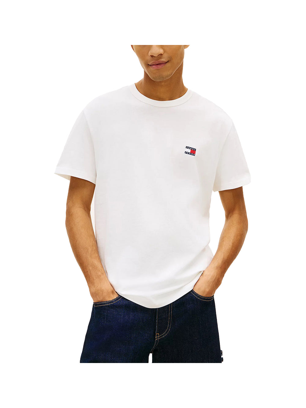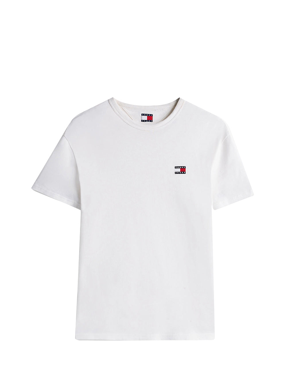 La T-shirt Tommy Jeans con distintivo Tommy Hilfiger in jersey di puro cotone offre comfort e stile ineguagliabili. La tinta in filo e il girocollo aggiungono dettagli di design, mentre il distintivo sul petto e il branding Tommy Jeans conferiscono un tocco di originalità. Il modello regular fit assicura una vestibilità comoda e l'alta qualità del tessuto garantisce durata nel tempo. Essenziale per un look casual e alla moda. Lavabile in lavatrice.