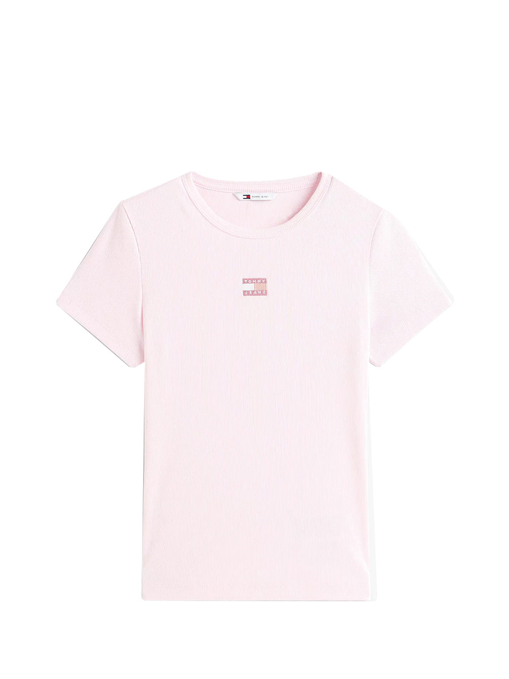 Tshirt tommy hilfiger badge slim fit a coste rosa